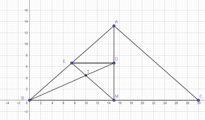 Then the height of triangle EDT is 1/2 the height of triangle BMT