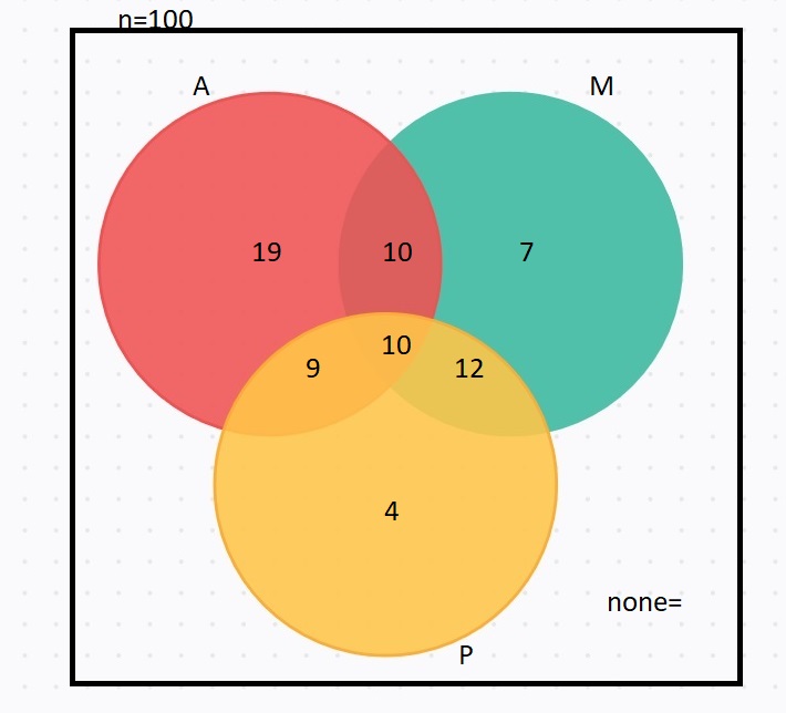 Here is a Venn Diagram of the description: the students who took none will be: n - (sum of all numbers) (where n= 100)