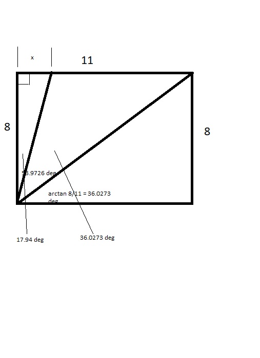 now you can use the tan funtion to find x then the are of the single thickness (one of them) is 1/2 8 * x