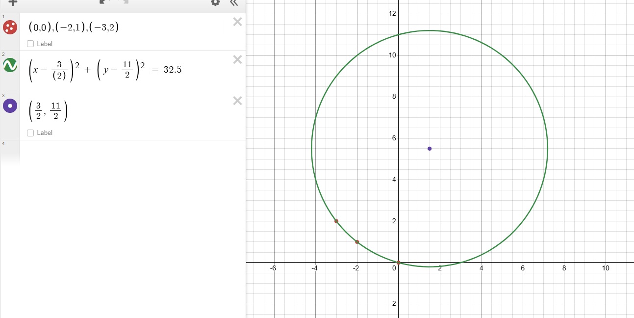 Back up ! Edited my answer x = 3/2 y = 11/12 is the center r^2 = 32.5