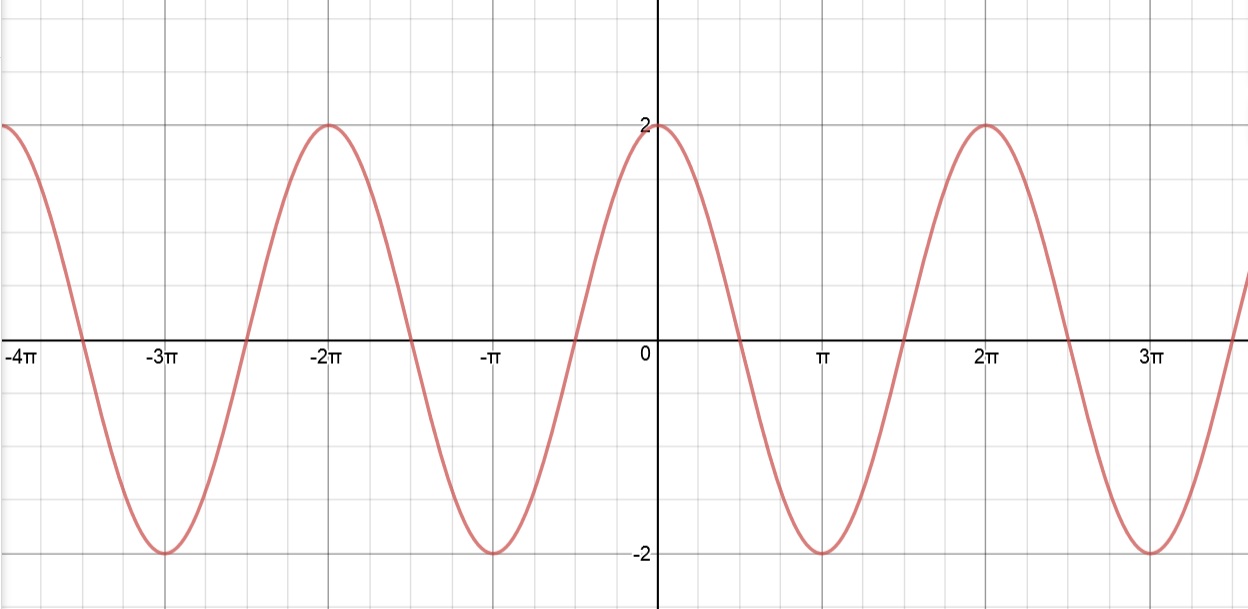 4: Similar to #3 the frequency is doubled (2x) so the period is HALVED to pi