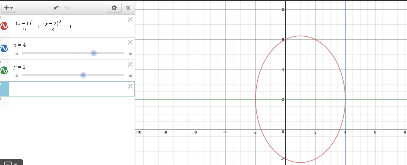 (x-1)^2/3^2 + (y-2)^2/a^2 = 1 Now we need to find a^2