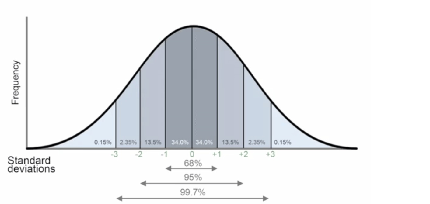 Here is a graph of a standard bell curve: (ya just have to memorize the divisions)