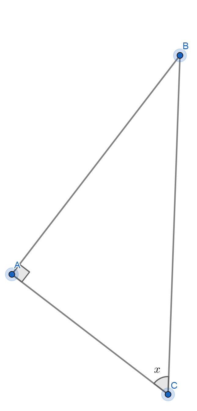\(\color{red}\text{c}\color{black}\text{os}\;x = \dfrac{\color{red}\text{a}\color{black}\text{djacent side}}{\color{red}\text{h}\color{black}\text{ypotenuse}}\)